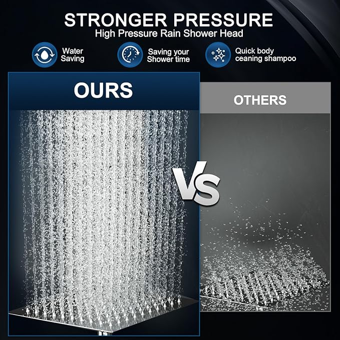 - 10 Inch Rainfall Shower Head: All-Chrome 304# stainless steel highest rust resistance, make the shower have a long service life, reliable leak-proof connection, Ultra-thin design and advanced air booster technology make water pressure higher, and the 10inch design can cover your whole body to a greater extent, giving you a luxurious and pleasant shower experience